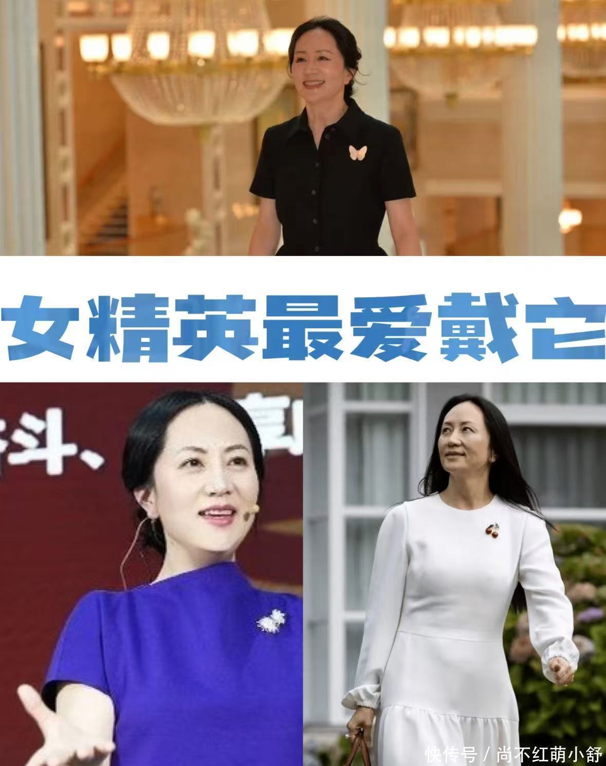 1)胸针: 废弃水钻和夸张的合金饰品。投资一两件胸针、珍珠或品性感强的丝巾饰品。像孟晚舟的胸针便是她的标配,搭配基础款单品,展现出好意思丽的贵气感足矣。