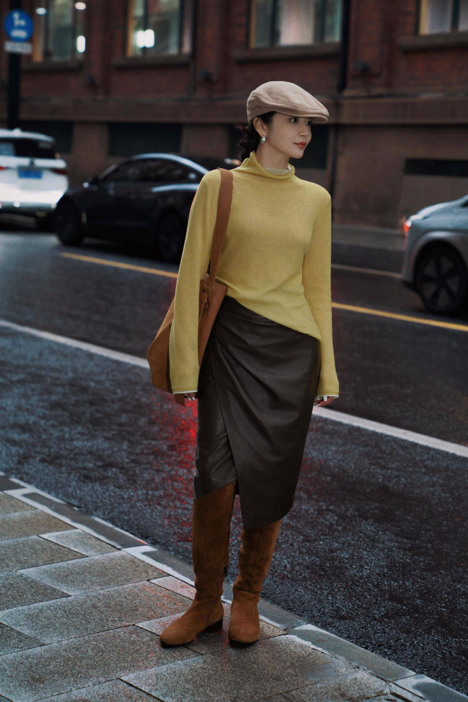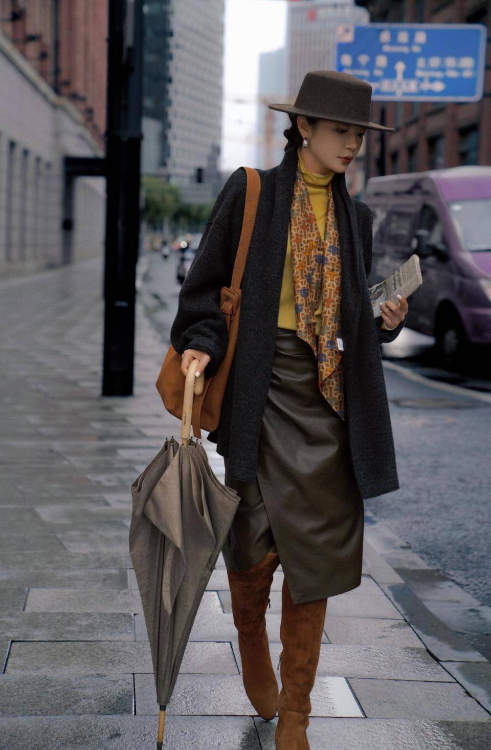 最主要的如故色调搭配,举例底下这件黄色的外衣,其实无为民众女性很难独霸的住,她礼聘的内搭是那种深军绿色的古道一稔,加上咖色的皮质半身裙,还有驼色的中筒靴,举座的色调搭配才有那种经典的嗅觉,平日情况下来说不推选你选这样的黄色外衣。